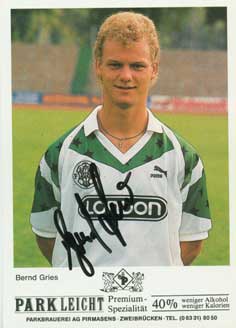 Bernd Gries Saison Verein Liga Spiele Tore Viktoria St.Ingbert 1987/88 FC 08 Homburg BL 8 0 1988/89 FC 08 Homburg 2.BL 7 1 1989/90 FC 08 Homburg BL 10 0 1990-93 FC 08 Homburg 2.BL 69 16 SpVgg Elversberg RL RW Hasborn TuS Steinbach