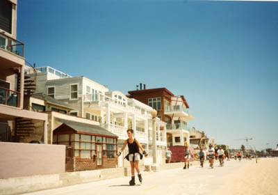 Nuja, abwarten.... Nach einem Honigbrot-Frühstück im Hotelzimmer fahren wir über Oxnard Richtung Los Angeles. Da Tanja offensichtlich schwanger ist (Gürteltasche vorne unterm T-Shirt macht einen dicken Bauch) schenkt uns ein freundlicher Verkäufer in Malibu 4 Postkarten. Am Strand von Malibu Sonnenbaden, relaxen und dann ab in den Trubel Richtung L.A. In Santa Monica ist mächtig was los. Viele Leute am breiten, sehr breiten Strand: Spaziergänger, Fahrradfahrer, Läufer, Skater und einiges mehr auf der Promenade. In der nahen Fußgängerzone ist es ebenso lebendig, exklusive Geschäfte, viele Menschen, Musikanten (für einen Tag ist's auszuhalten, unsere Wildnisszeit kommt ja noch). Zum Mittagessen gehen wir zum schicken Wolfgang Pucks Express, wir essen eine sehr gute Pizza mit Salat. Weiterfahrt über Sunset Boulevard